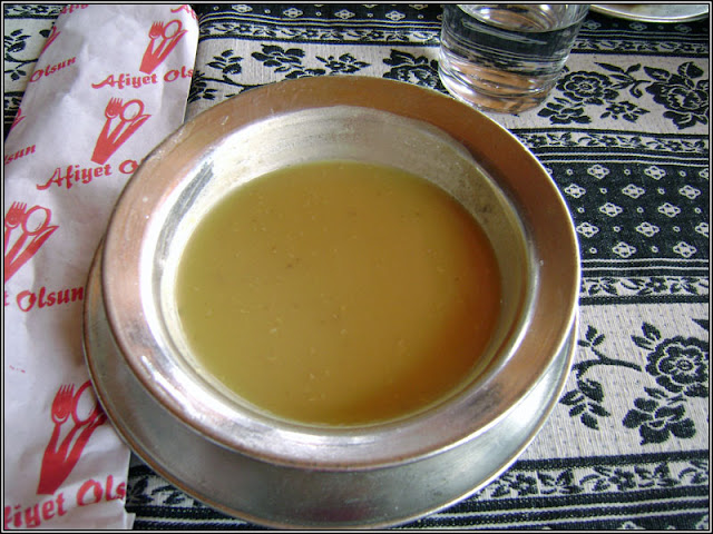 Am avut la meniu niște lipii, apoi ne-au adus o supă cremă de fasole/năut (?), niște lipii umplute cu brânză sărată si la desert, am avut un dulce tradițional, șillik, adică o clătită umplută cu fistic și stropită cu un sirop dulce.