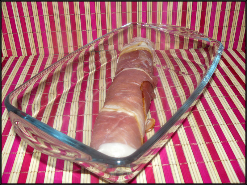 Amestecăm 500 g carne tocată cu o ceapă și un morcov ras și puțin călite. Adăugăm un praf de paprica și un praf de piper cu lămâie de la firma cu râșnițe. Se întinde un strat din felii de șuncă. Peste șuncă se pune carnea tocată. La mijloc se așează bucăți mai groase de cașcaval. Se rulează carnea în jurul cașcavalului, iar in jurul cărnii se rulează șunca. Nu mai este necesar să adăugați sare, fiindcă rulada își va trage sarea atât din șuncă cât și din cașcaval.
